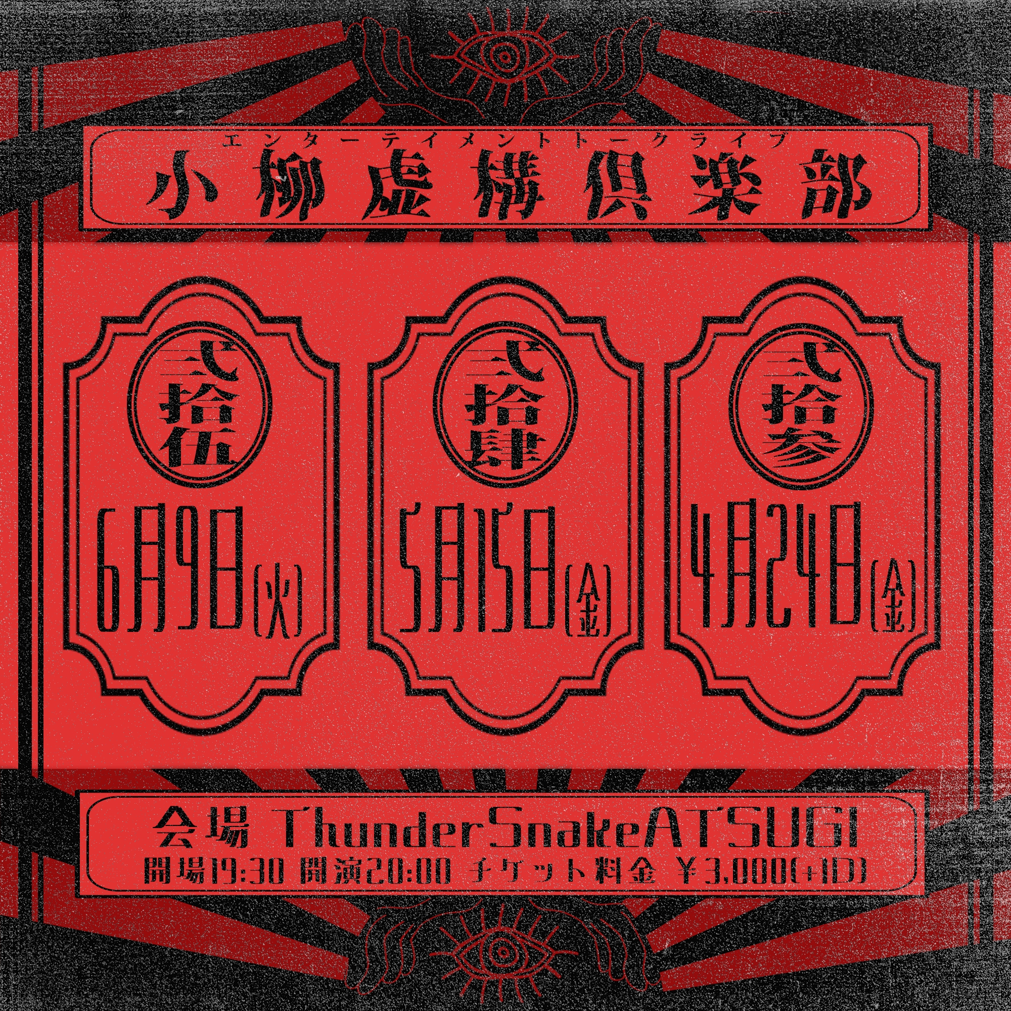夕闇に誘いし漆黒の天使達 小柳によるエンターテイメントトークライブ アナタが目撃するのは果たして・・・・。 ※全席自由座席です。 ※キャンセルの際は必ずご連絡ください。 ※キャンセル回数が多い方は予約の際にお断りさせてい […] |